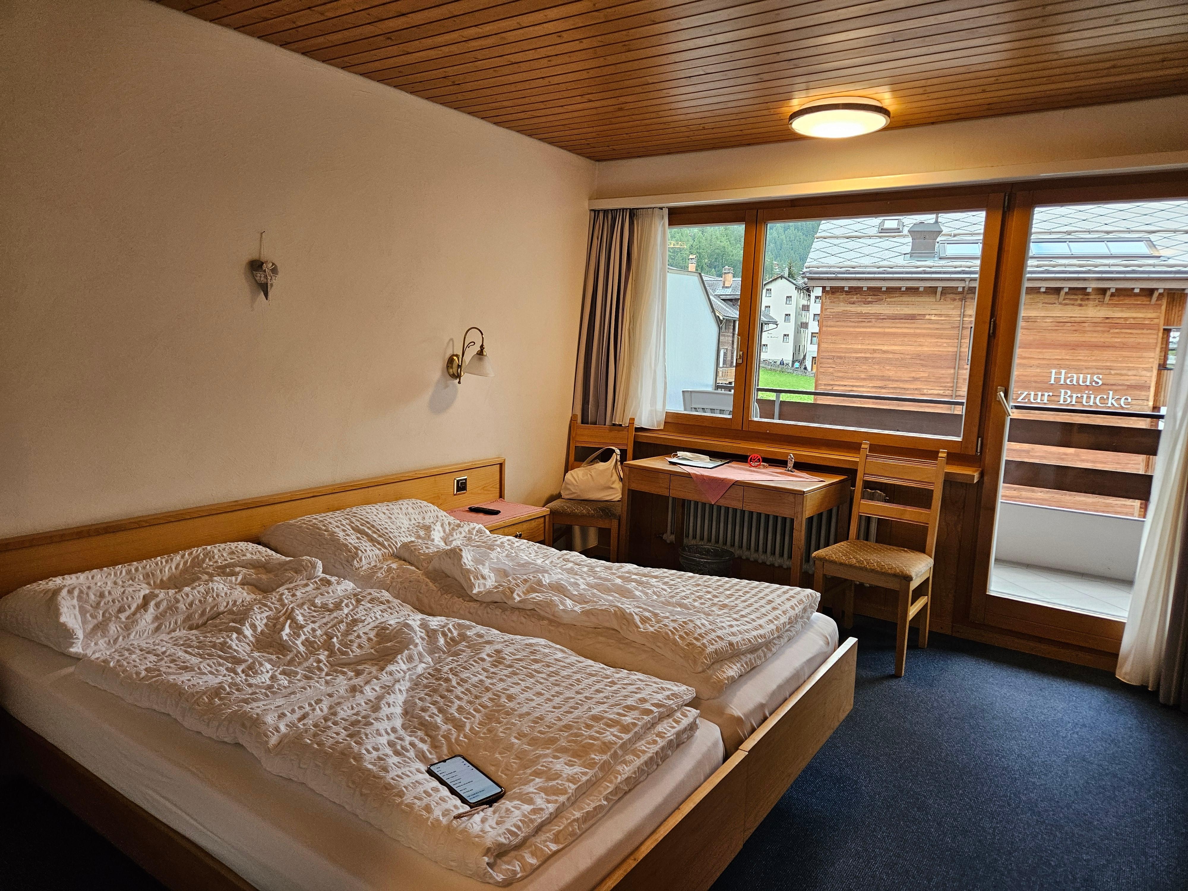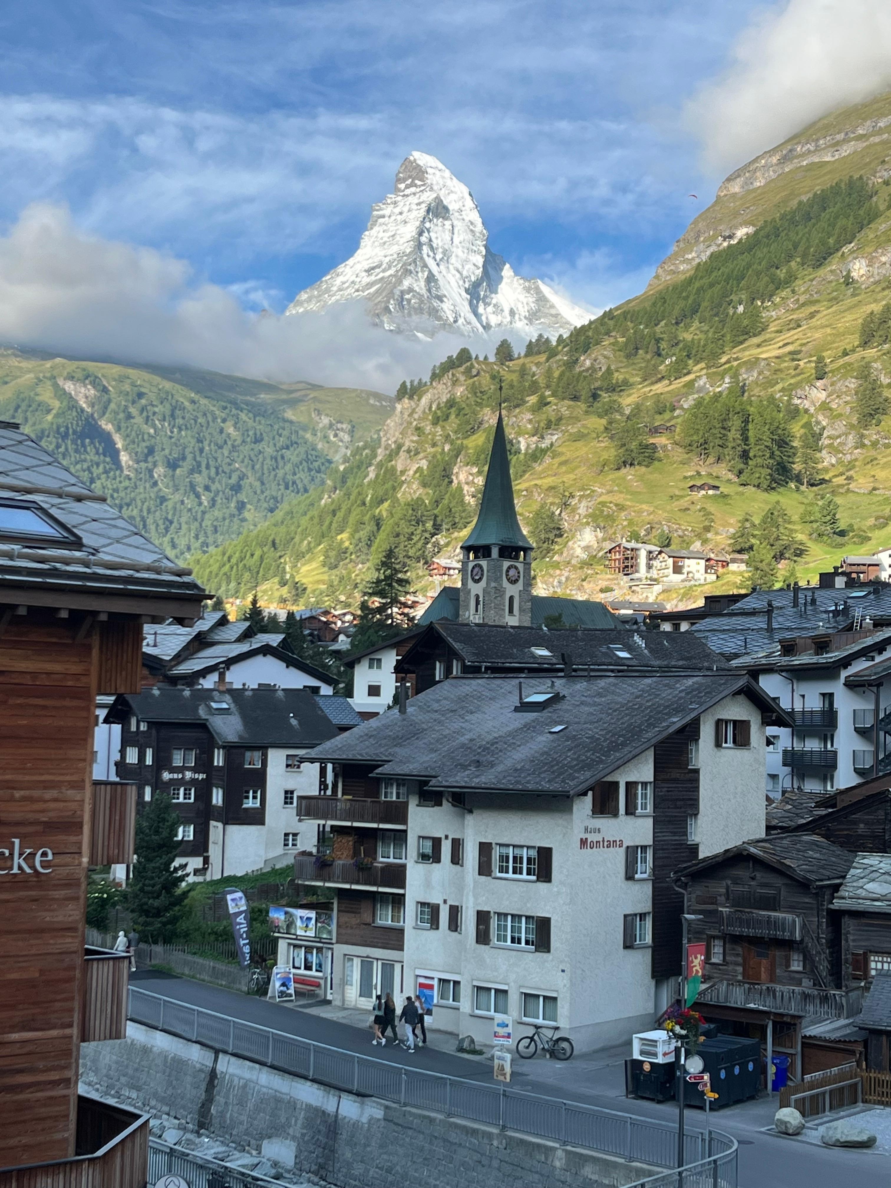 Aside from the friendliness of the staff, the thing I liked best about Hotel Parkas was the amazing view of the Matterhorn from my balcony! The room was bright, clean, and very pleasant. Although there was not a refrigerator in the room, there was a refrigerator in the room downstairs. The staff was extremely accommodating. The hotel was also near the train station and the numerous shops I the area. I would definitely recommend this hotel. It included breakfast and was a good value for the price.